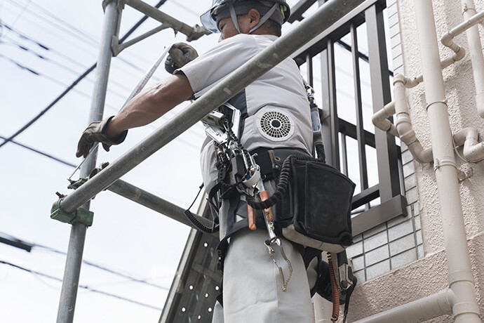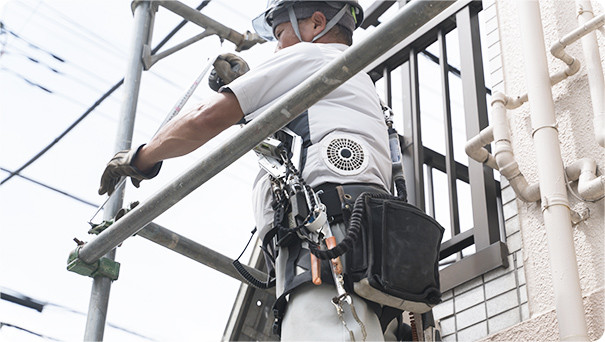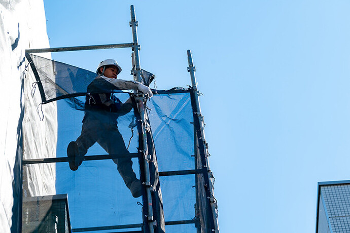 一貫した自社施工による中間マージン0と、防水・塗装の材料調達にかかるコストが一切必要ないという特有のメリットに加えて、グループや関連会社との強固なネットワークを活かして市場よりも安い価格で資材を入手できることも、コストダウンを実現できるもう一つの理由です。親会社である新東亜工業や、足場工事におけるエキスパートであるKRHグループとの連携を活かして全国で大小様々な規模の修繕工事を請け負ってきた実績を持っていますので、高機能で高品質な材料や資材を一括で仕入れることが可能です。施工後には材料メーカーの保証に加えて、材料問屋ならではの独自の保証を組み合わせた充実のアフターフォロー体制もご好評いただいております。